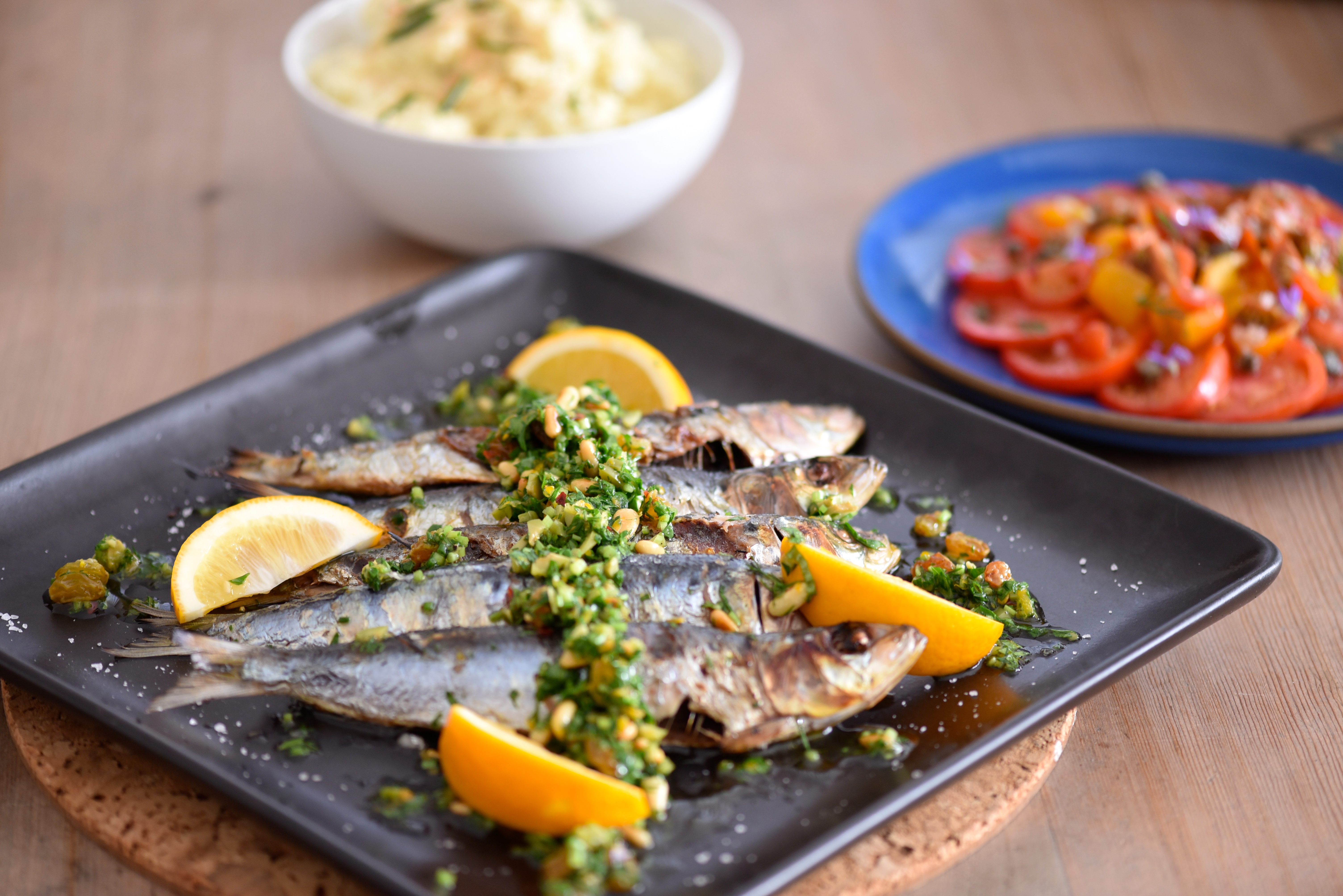 - 2 fat sardines per person, gutted, rinsed and patted dry